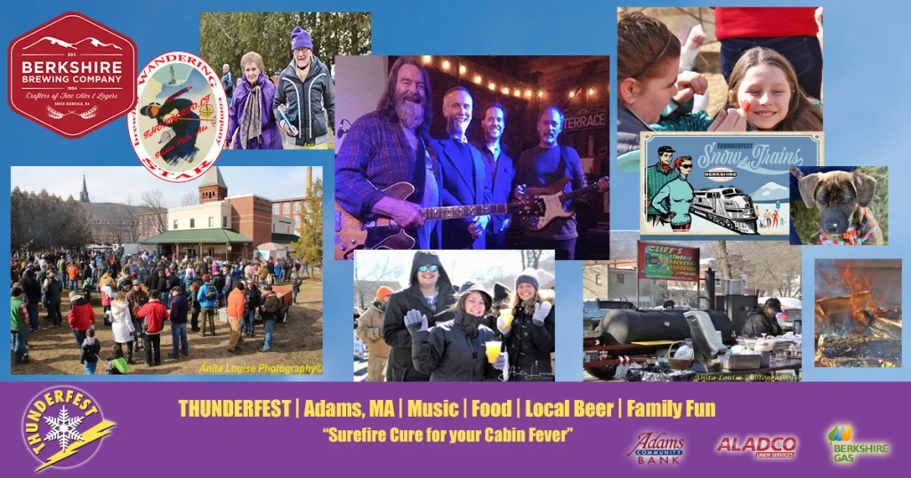 Held outdoors at the Adams Visitor Center at 3 Hoosac Street, admission is free to a festival full of music, food and fun in celebration of winter in the Berkshires. There will be live musical acts, local craft beer and local wine, great food, outdoor recreation and craft exhibitors. Activities include a toasty campfire with marshmallows and other activities for the kids. Leashed pets are welcome, so it’s fun for the whole family! Historic Train Rides by Berkshire Scenic Railway will also be available, right across Hoosac Street at Adams Station. The festival runs from 12-5pm.