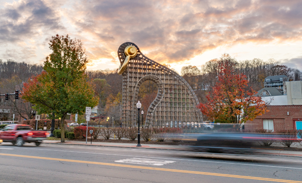 The spectacular forty-foot-tall work — the largest temporary installation Puryear has created — is built of wood, Puryear’s signature material, and chain-link fence. Through abstract means, the artist has crafted an ongoing dialogue with history, art history, identity, and politics. Here, “bling,” a slang term for flashy jewelry and accessories, is rooted in the urban youth, hip-hop, and rap culture of the 1990s. Originally commissioned for New York City’s Madison Square Park, the title of the artwork and its initial placement in the heart of Manhattan demonstrate Puryear’s recognition that Big Bling was a reflection of the character and the inhabitants of dense urban environments. Restored and transposed to MASS MoCA’s campus, the significant scale of the piece in relation the lower-scale and density of a New England factory town changes viewers’ perspective while amplifying the work’s monumental impact.